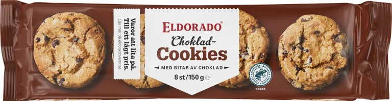 VETEMJÖL, mörk choklad 25% (socker, kakaomassa*, glukossirap, kakaosmör*, emulgeringsmedel (E322 (SOJA)), vegetabilisk olja (palm**, solros), socker, glukos-fruktossirap, salt, bakpulver (E500, E450), naturlig arom, färgämne (E150a). Kan innehålla spår av ÄGG, MJÖLK, MANDEL, HASSELNÖT, PEKANNÖT och MACADAMIANÖT. *Rainforest Alliance-certifierad. Läs mer på www.ra.org. Ursprung chokladbitar: EU/icke-EU. **Hållbarhetscertifierad palmolja. Läs mer på www.axfood.se/palmolja. Den mörka chokladen innehåller minst 43% kakao.