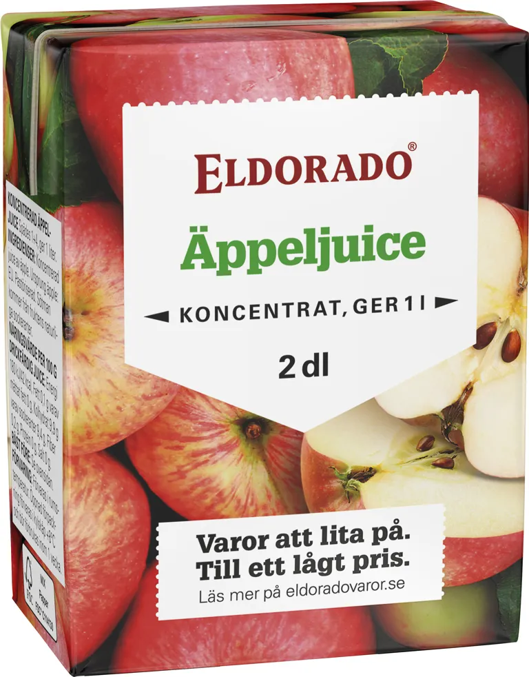 Koncentrerad äppeljuice. Späds med vatten. 2 dl koncentrat ger 1 liter juice.