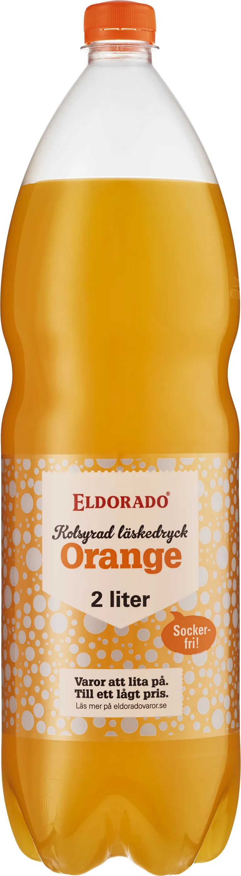 Kolsyrad läskedryck med smak av apelsin. Sockerfri. 2 liter.