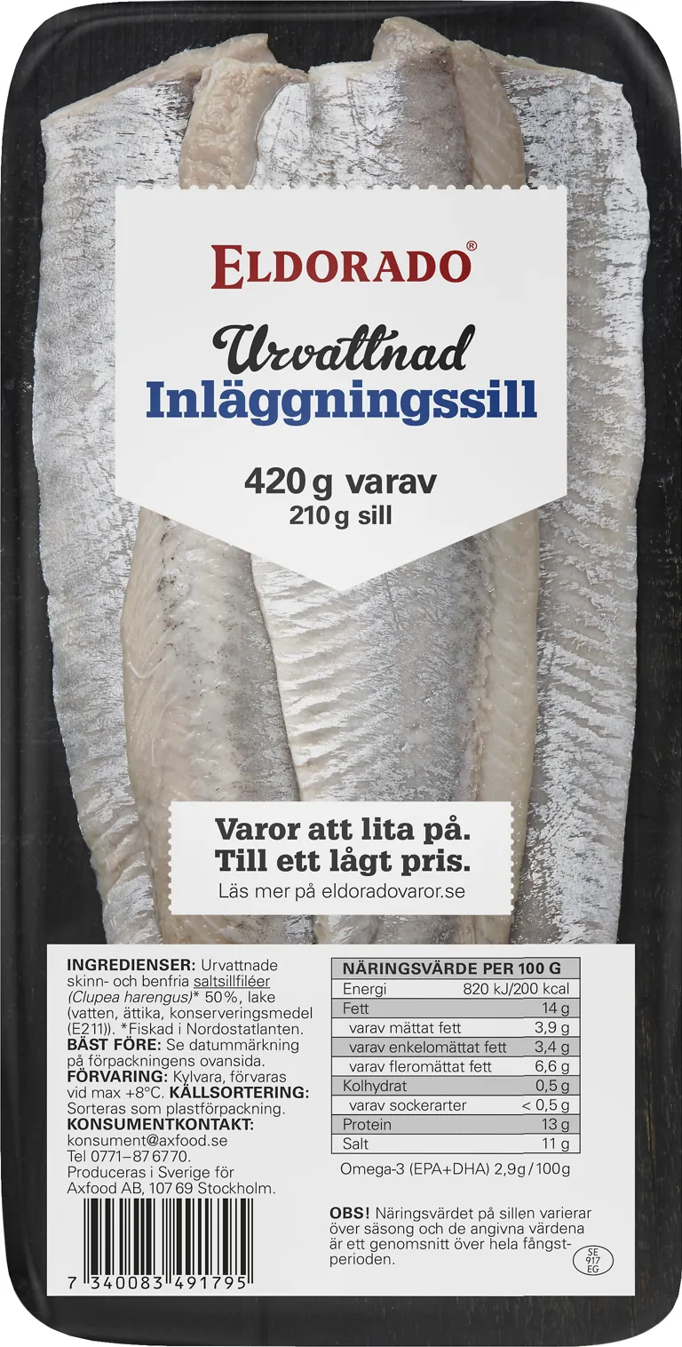Urvattnad inläggningssill. 420 gram, varav 210 gram sill.