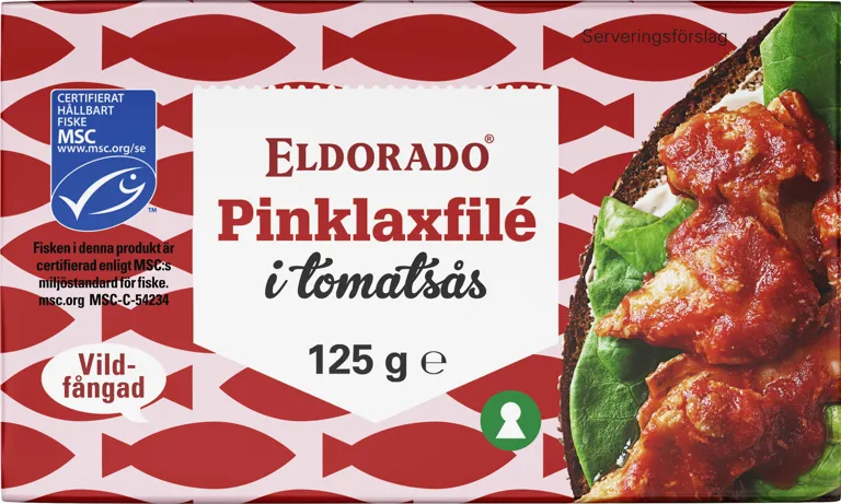 PINKLAX (Oncorhynchus gorbuscha) 64%, vatten, tomatpuré 13%, salt. Fångad med nät i nordöstra stilla havet (FAO 67). Från ett MSC-certifierat hållbart fiske. www.msc.org/se