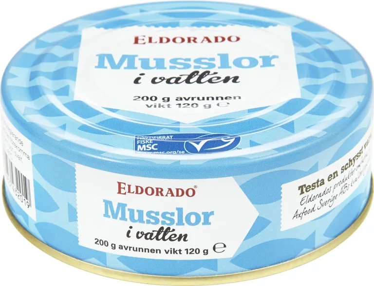Musslor i vatten. 200 gram, avrunnen vikt 120 gram.