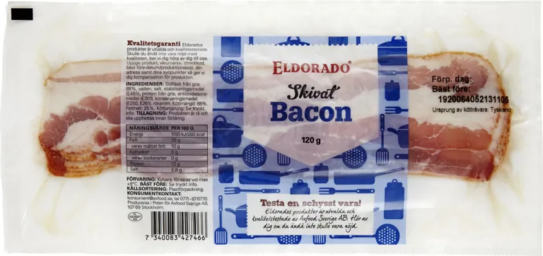 Skivat Bacon. Testa en schysst vara! Eldorados produkter är utvalda och kvalitetstestade av Axfood Sverige AB. Hör av dig om du ändå inte skulle vara nöjd.