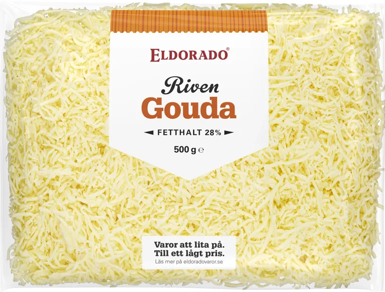 Eldorado riven gouda 28% med sin krämiga konsistens och en mild, men ändå rik smak, är denna ost idealisk för smörgåsar, sallader, och som en del av dina favoritmaträtter. 500 gram.