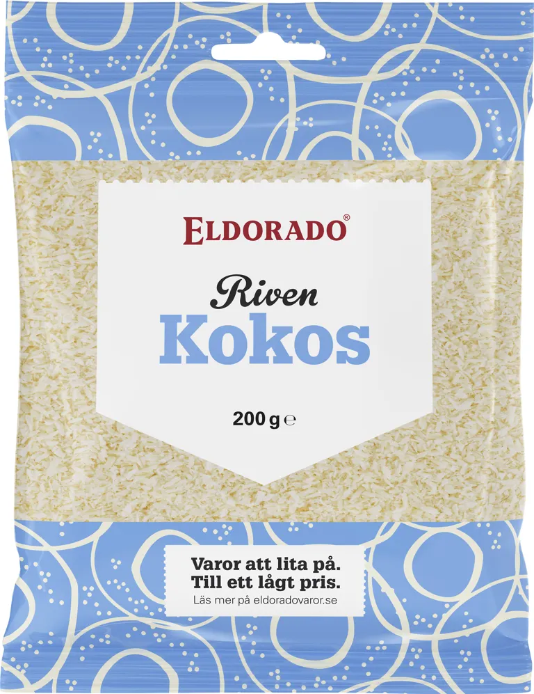 Riven kokos. Kan innehålla spår av JORDNÖT, MANDEL, HASSELNÖT, VALNÖT, CASHEWNÖT, PEKANNÖT, PARANÖT, PISTASCHNÖT och MACADAMIANÖT.