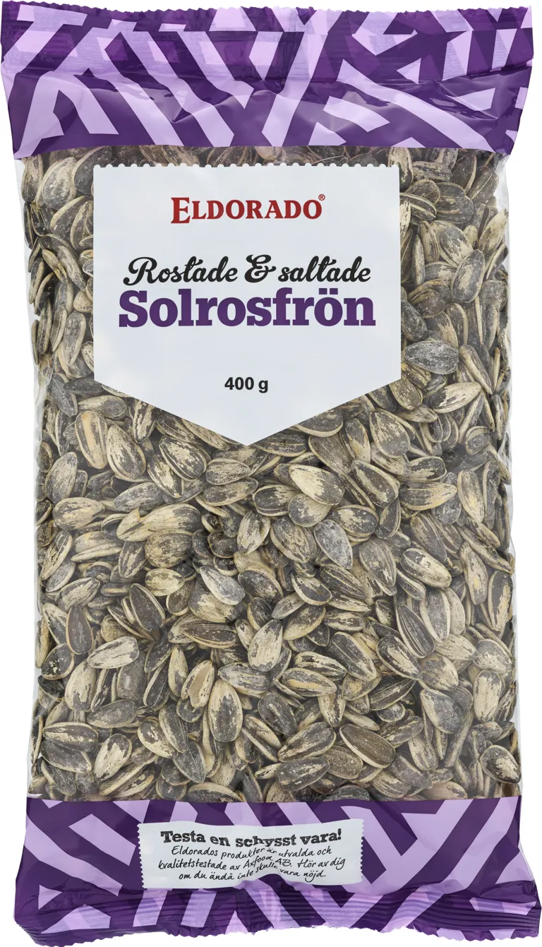 Rostade solrosfrön, salt 1,5%. Kan innehålla spår av JORDNÖT, SOJA, MANDEL, HASSELNÖT, VALNÖT, CASHEWNÖT, MACADAMIANÖT, PARANÖT, PEKANNÖT, PISTASCHNÖT och SESAM.